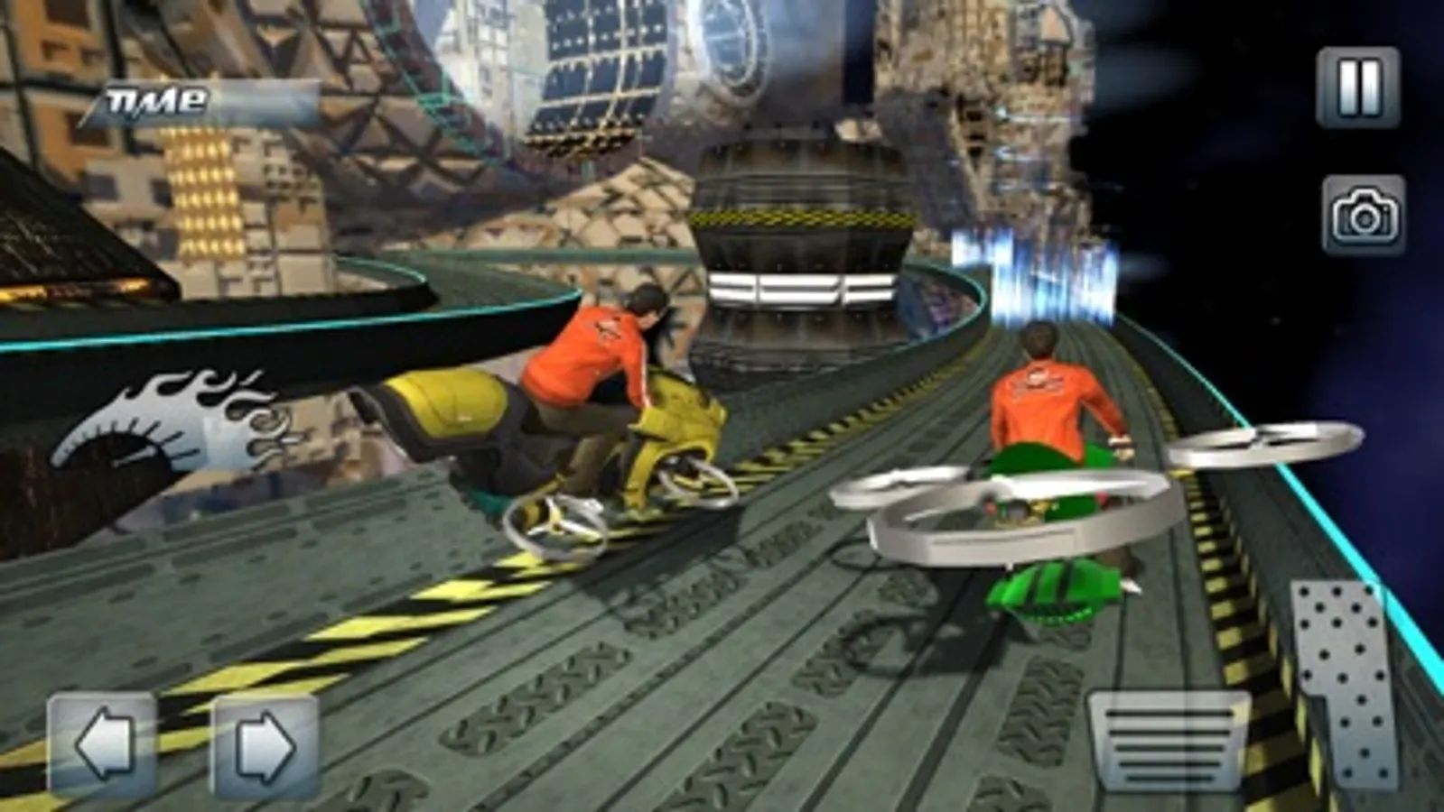 After play this game you will be able to drive and fly the hoverbike in future. This game environment is based on the sci-fi and two different modes you can see the first mode is the time trial in which the time is given and you have to fly your sports bike and with balancing you have to reach the final position and the second mode of this game a free environment is given you can fly and make the stunts without thinking about the speed also spend your time with this game. many hoverbikes and characters are available in this game you can unlock them with the help of XPS points or you can unlock all simply from the in-app purchase in just 2.99$.