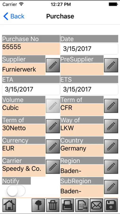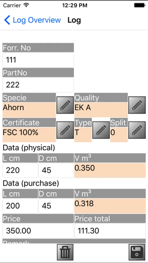 This app serves the purpose of offline timber purchases. Synchronize master data of main system to your device. Create a purchase and add all purchase informations and logs. Send timber purchase to main system by upload and/or email. In addition print purchase confirmation on mobile printer.