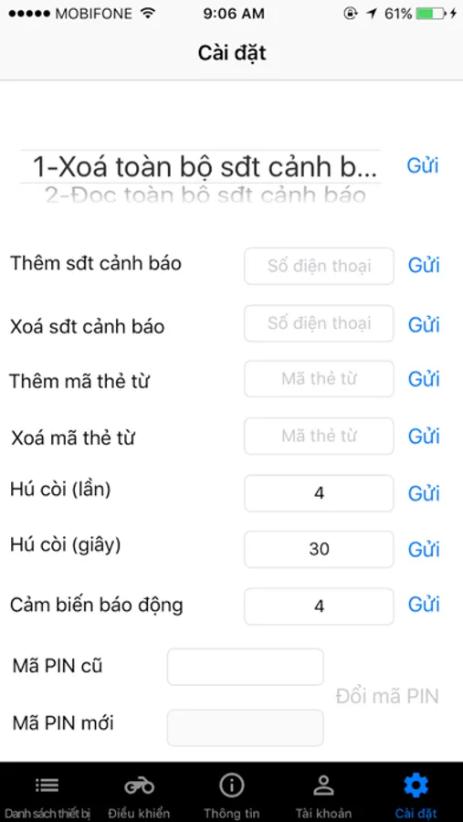 - Hỗ trợ điều khiển tắt bật báo động, máy xe, thẻ từ, tìm vị trí.