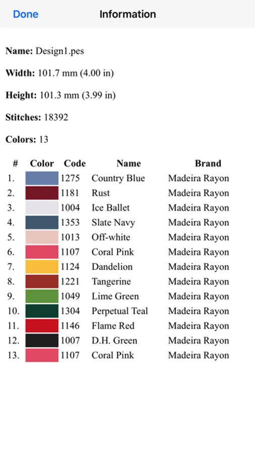 - Match your design's colors to standard embroidery thread charts like Madeira, Robison Anton, Mettler, etc.