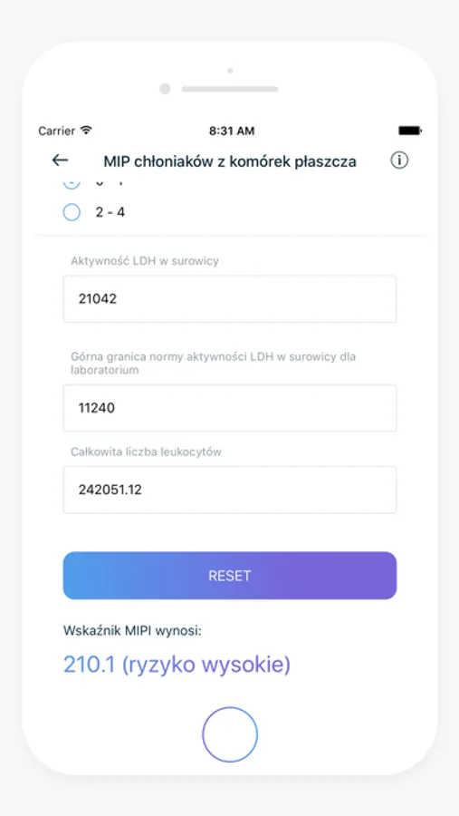 Aplikacja Kalkulator Hematologa jest pomocnym narzędziem w codziennej praktyce lekarskiej w opiece nad pacjentem z rozrostową chorobą nowotworową. Narzędzie pozwoli ocenić klirens kreatyniny, czyli najłatwiej uzyskiwany parametr szacujący filtrację kłębuszkową (GFR). Umożliwi klasyfikację szpiczaka plazmocytowego wg. Międzynarodowego Systemu Stopniowania (ISS - International Staging System). Pomoże ocenić czynniki prognostyczne dla przebiegu klinicznego chłoniaka według Międzynarodowego Indeksu Prognostycznego (IPI, International Prognostic Index), a w przypadku chłoniaka grudkowego według FLIPI (Follicular Lymphoma International Prognostic Index). Ocena ryzyka neutropenii dokonywana jest na podstawie zaleceń Grupy Roboczej EORTC ds. wytycznych stosowania G-CSF. Kolejnym przydatnym narzędziem przy ocenie rokowanie chorych na przewlekłą białaczkę szpikową są 3 skale prognostyczne: Sokala, Hasforda i EUTOS. Międzynarodowy system prognostyczny IPSS dla zespołów mielodysplastycznych wyliczy czas przeżycia chorych i ryzyko transformacji w AML.