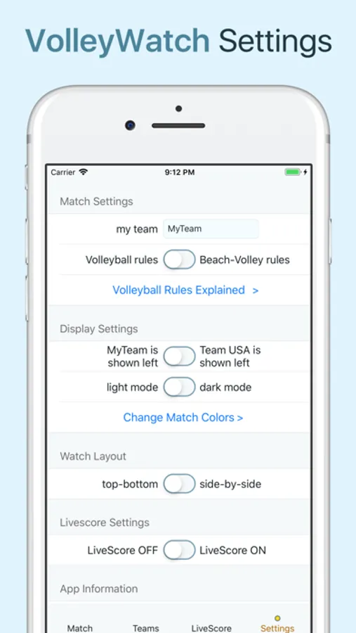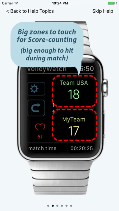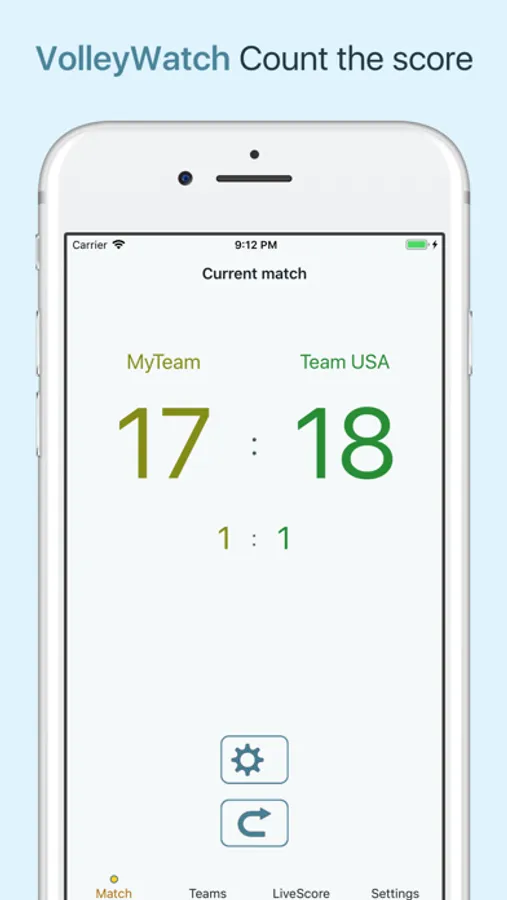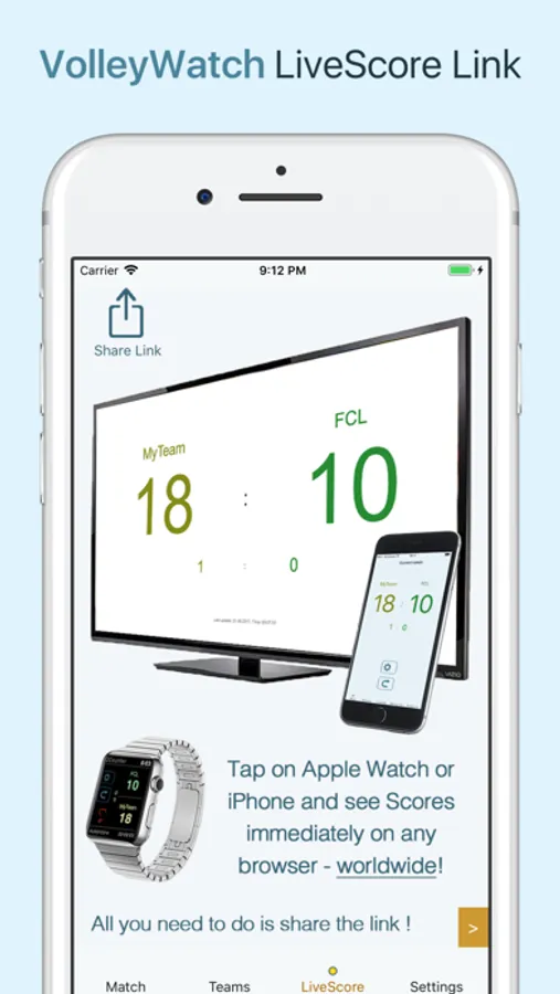 VolleyWatch's newest feature is the "LiveScore" (It works on iPhone or Apple Watch): Tap on the iPhone or Apple Watch and see your Volleyball Scores immediately on any browser - worldwide!