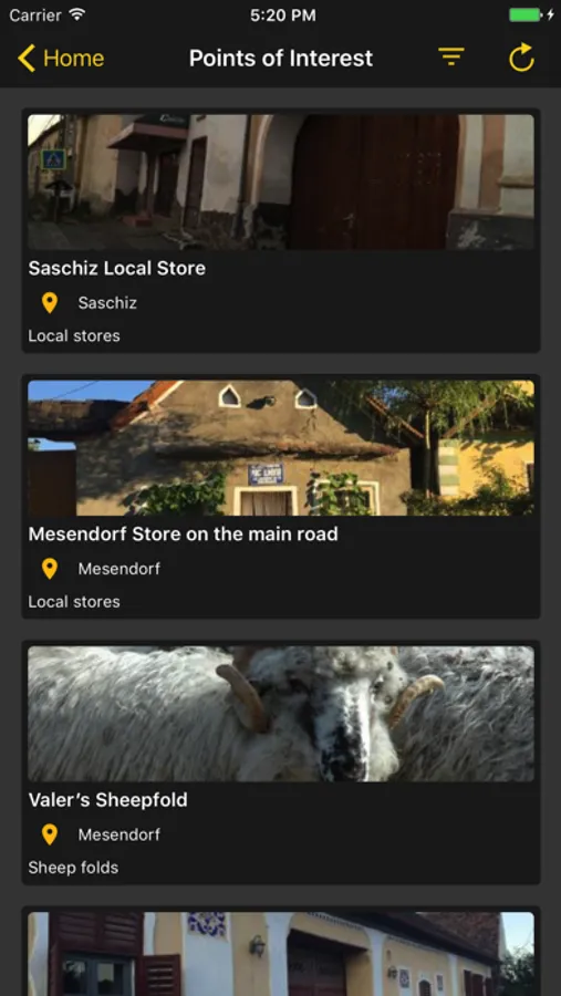 - Points of interest including info about: bed & breakfast, food & drinks, stores available in the villages, tourist information centres