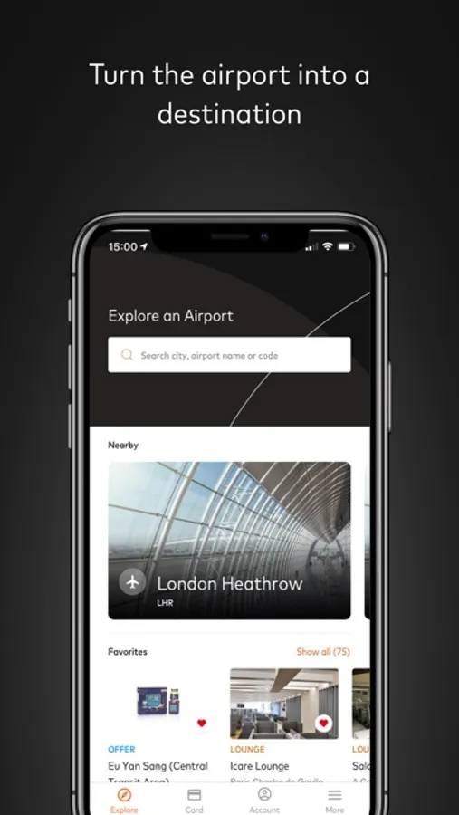 - Search for a lounge by simply typing an Airport, Airport code, City or Country