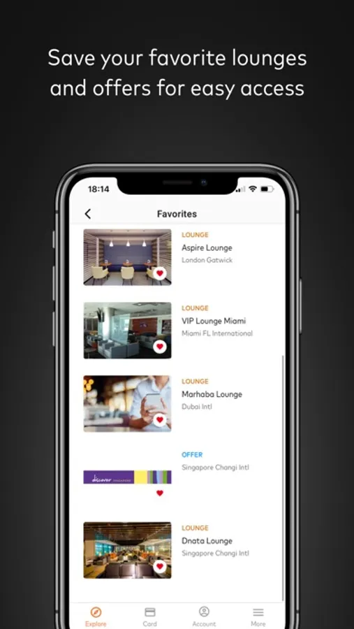 Easily manage your account information, view lounge visit history, and access active and historical offers.