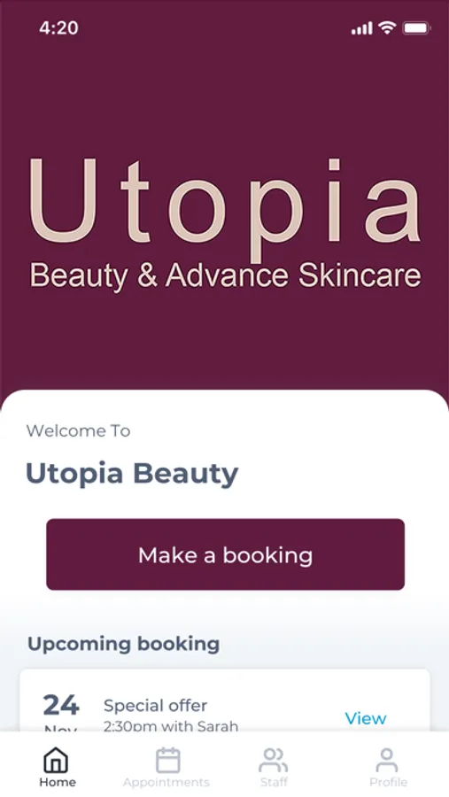 The Utopia Beauty app makes booking your appointments and managing your loyalty points even easier. You're just a few taps away from feeling good and looking great!