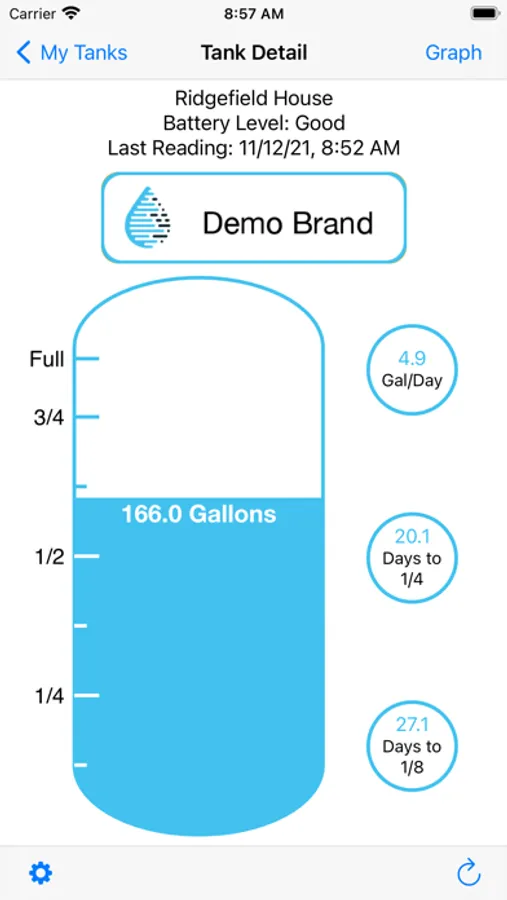 The Smart Oil Gauge iOS App allows our users to check their fuel oil levels and usage patterns quickly and easily from their iPhone or iPad. Users can also manage sensor settings and notification options from the app.