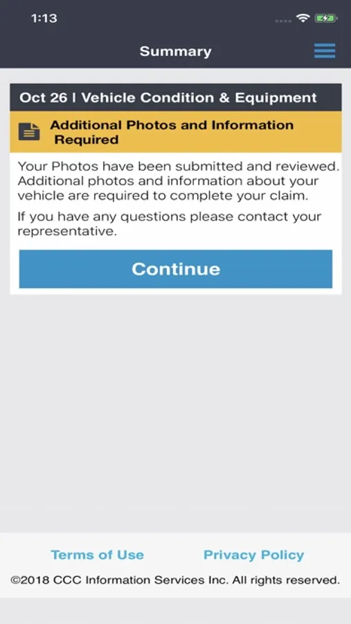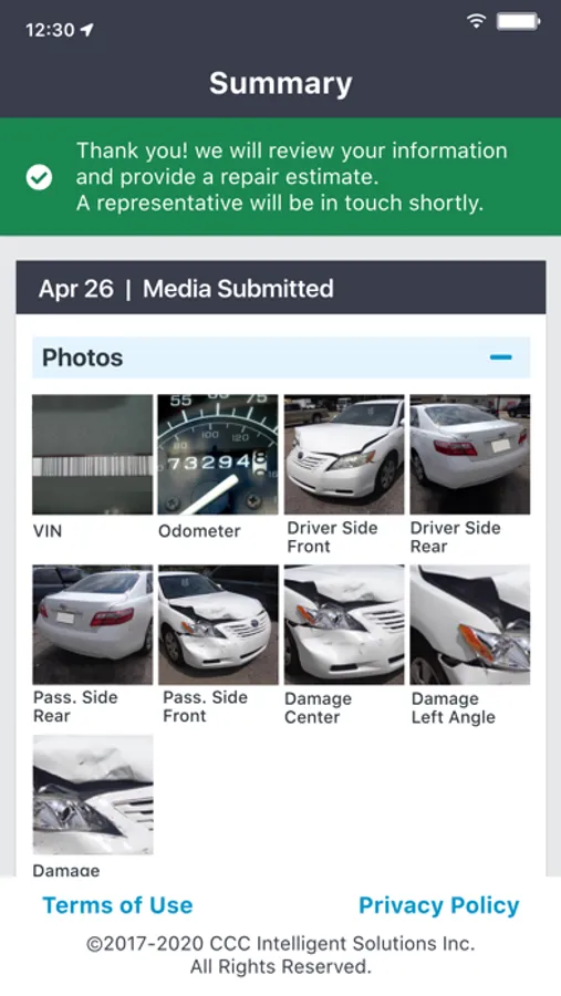 CCC Mobile TM Solutions – Quick Estimate app will help expedite your claim by allowing you to upload images for your recent claim and receive an estimate. The app will guide you through steps needed to capture the pictures of your vehicle’s damage and submit it for review. You can achieve all of this without having to drive to a repair facility or leaving the comfort of your home