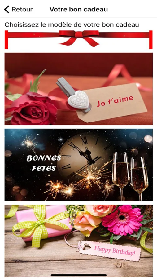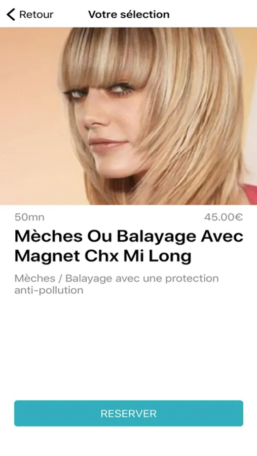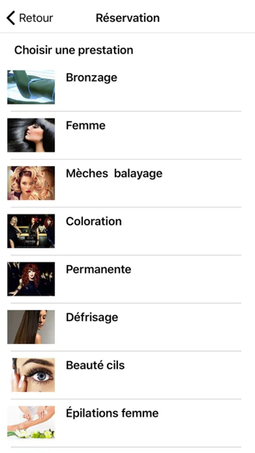 • Vous accédez au menu des prestations proposées par votre esthéticienne ou coiffeuse.