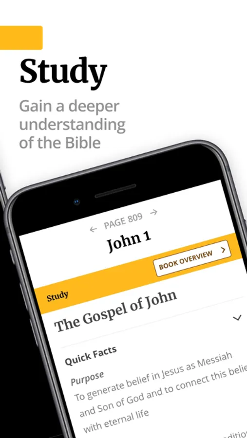With your physical Bible open, use the Filament Bible app to simply scan the page you are reading with your device’s camera. Your iPhone or iPad recognizes the page and instantly connects you to content centered around that passage. You'll get access to in-depth study notes, profiles of key people mentioned on the page, articles about important themes, devotionals, streaming audio, videos, and interactive maps that will help you really get a feel for the world of the Bible.