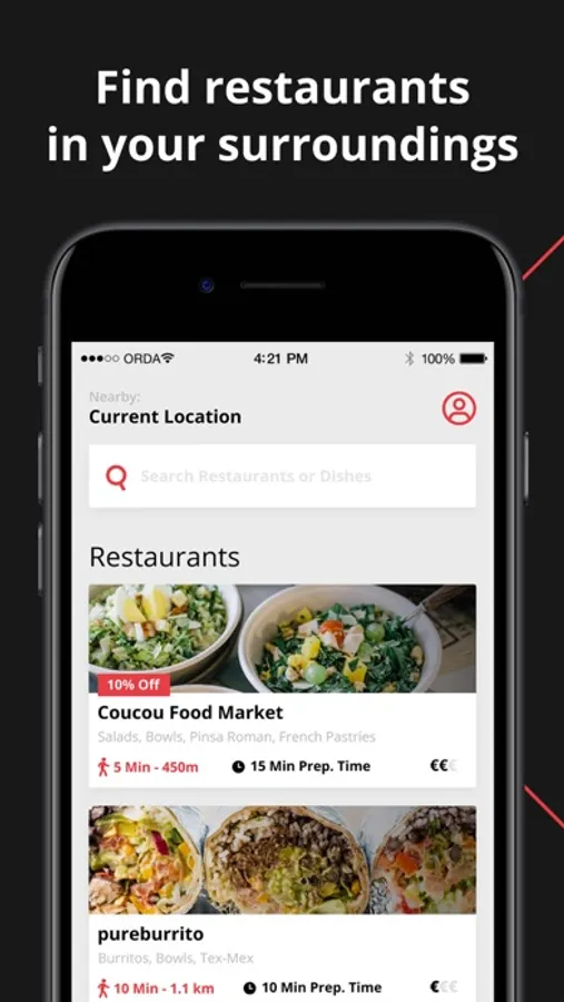 From pizzas and burgers to salads, burritos, dumplings and amazing thai food, ORDA helps you make the most out of your lunch. Simply order contactless from home or from the office, decide the time when you want your food to be ready and enjoy your ORDA moment!