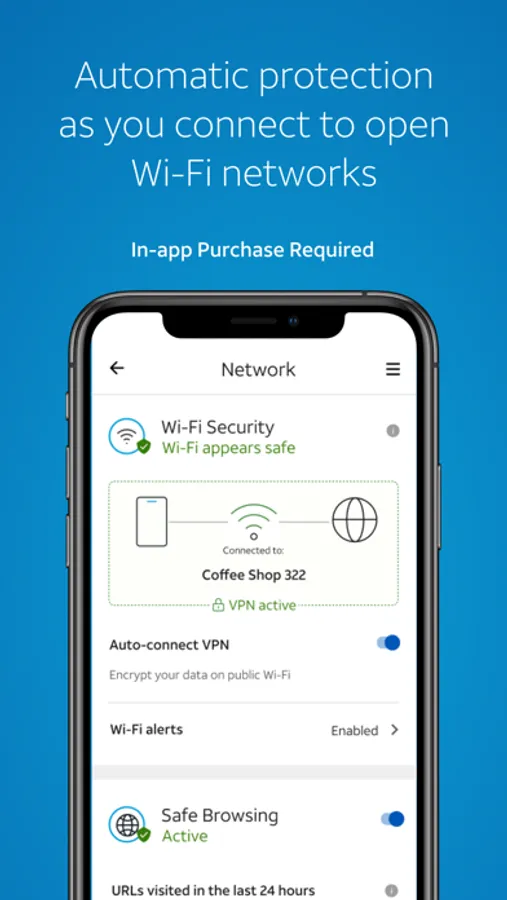 Public Wi-Fi Protection. Requires setup; the feature is automatically enabled when your device joins a public (unencrypted) Wi-Fi network unless an alternate VPN service is active. Does not work when using certain video streaming apps or Wi-Fi calling on certain devices.