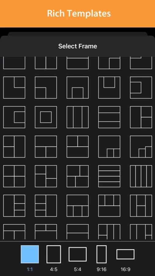 +) Rich frame templates to easily create collages in grid