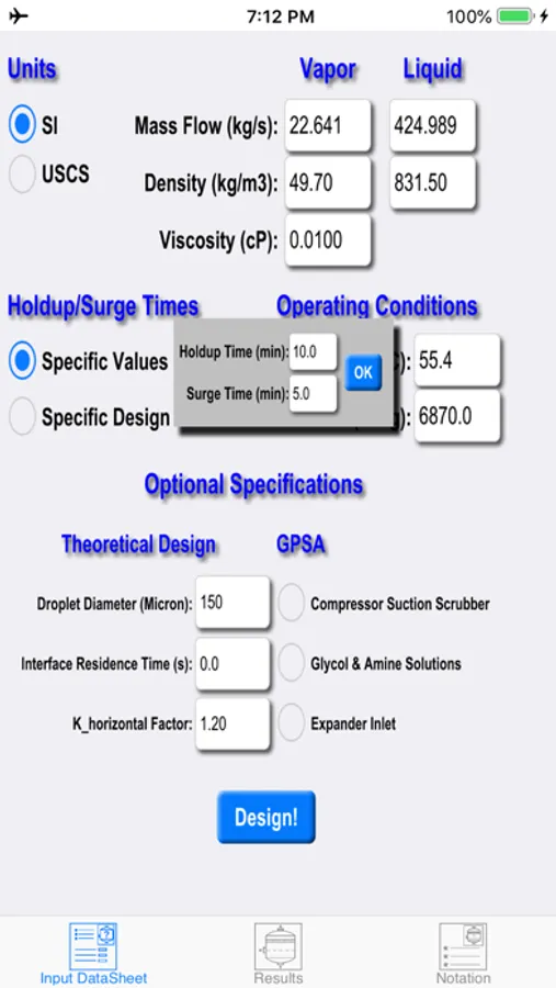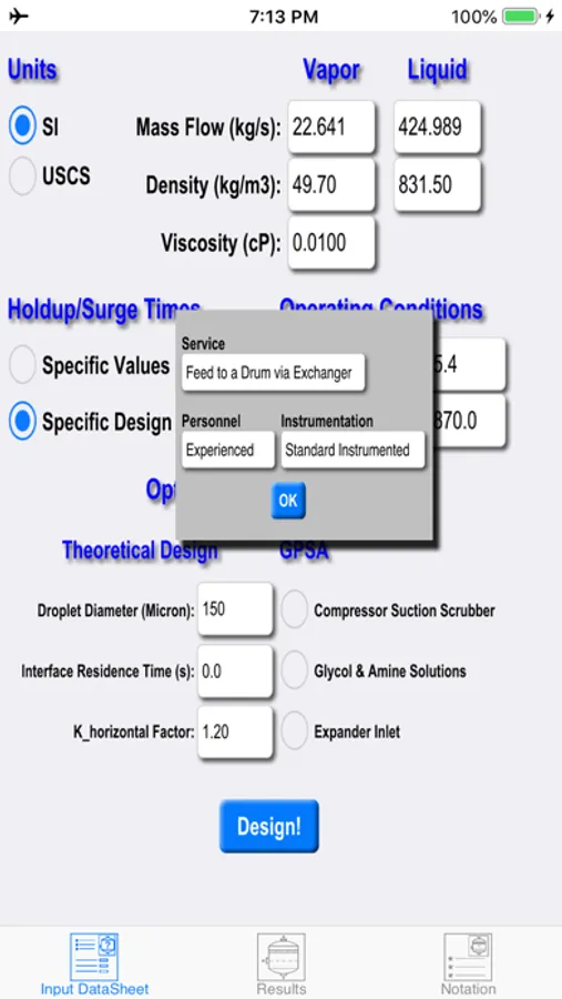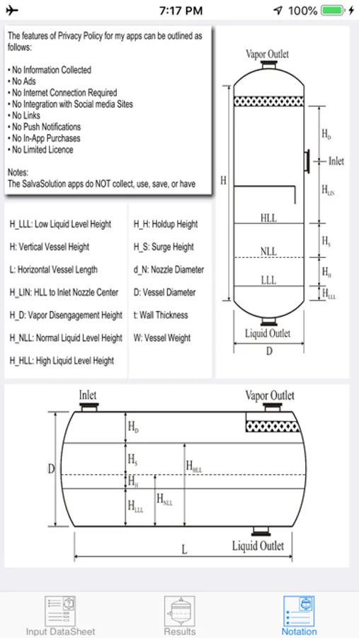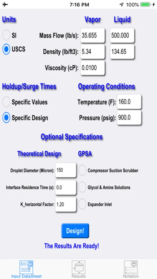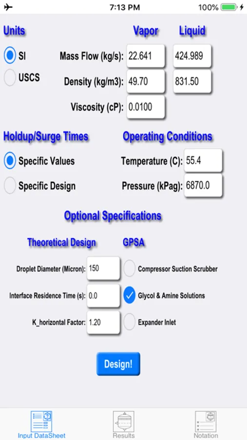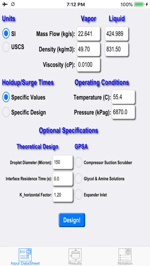 This app is the applied product of a PhD research project focused on the optimum design of multiphase separators. Through the course of this project, the most popular sizing approach of Svrcek-Monnery was modified to implement oilfield phase separation data as well as the results of Computational Fluid Dynamic (CFD) simulation of the process. "Two Phase Separator" app provides detailed results for all well-known classic methods, i.e. GPSA, York Demister, Theoretical, as well as the novel Realistic-CFD approach. Note, the popular classic methods are usually too conservative and specify extremely oversized separators. The Realistic-CFD approach, on the other hand, proposes more economical separators that can successfully accomplish the separation task. For background information, please refer to my website (http://www.salvasolution.com) and the technical publications listed below.