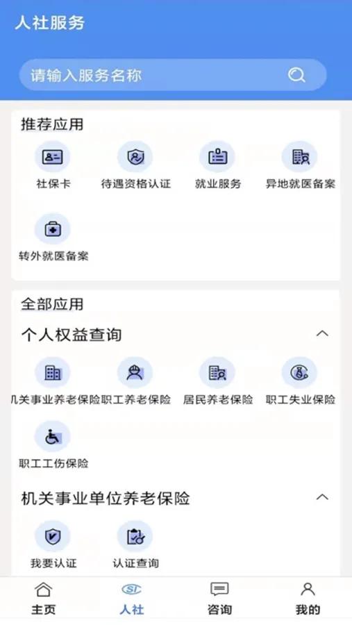 提供参保登记、缴费、转移、待遇申请、认证、查询等功能。
