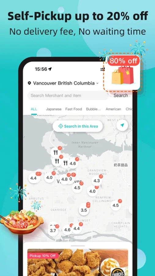 Self Pick-up: Order on our app and pick-up meals at restaurants. Eliminate wait times, and enjoy further savings. (Enjoy 10% OFF Pick-up orders, No delivery fees, No tips, No transaction fee.)