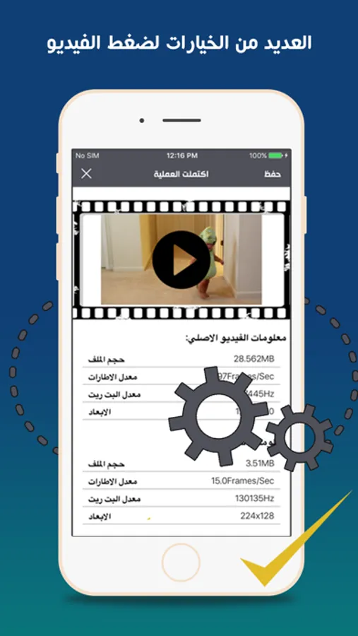 عند ضغط مقطع فيديو لا يتم حذف الفيديو الاصلي ويتم الاحتفاظ بالفيديو الناتج في مكتبة خاصة بداخل التطبيق تسهل عملية المشاركة ويمكن بسهولة تصدير الفيديو لمكتبة الجهاز