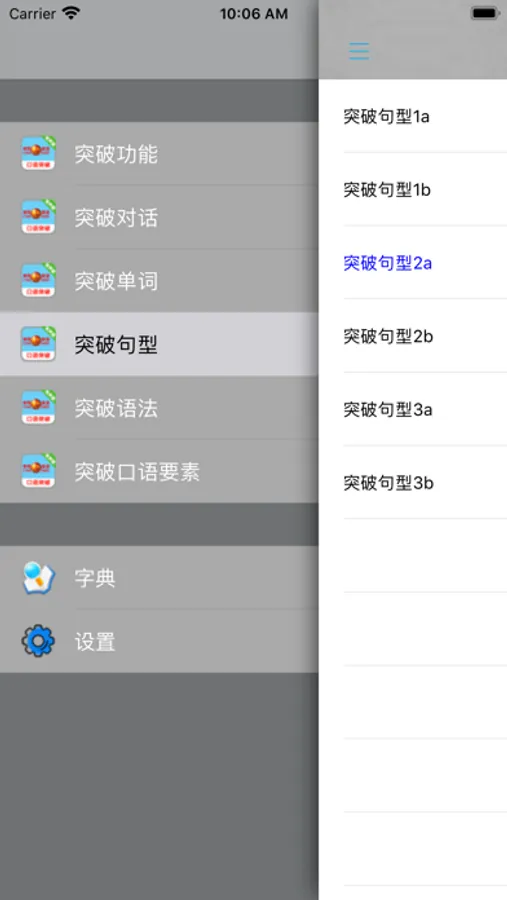 本软件配套英语口语突破系列的 《突破功能》、《突破对话》、《突破单词》、《突破句型》、《突破语法》、《突破口语要素》最新教材。