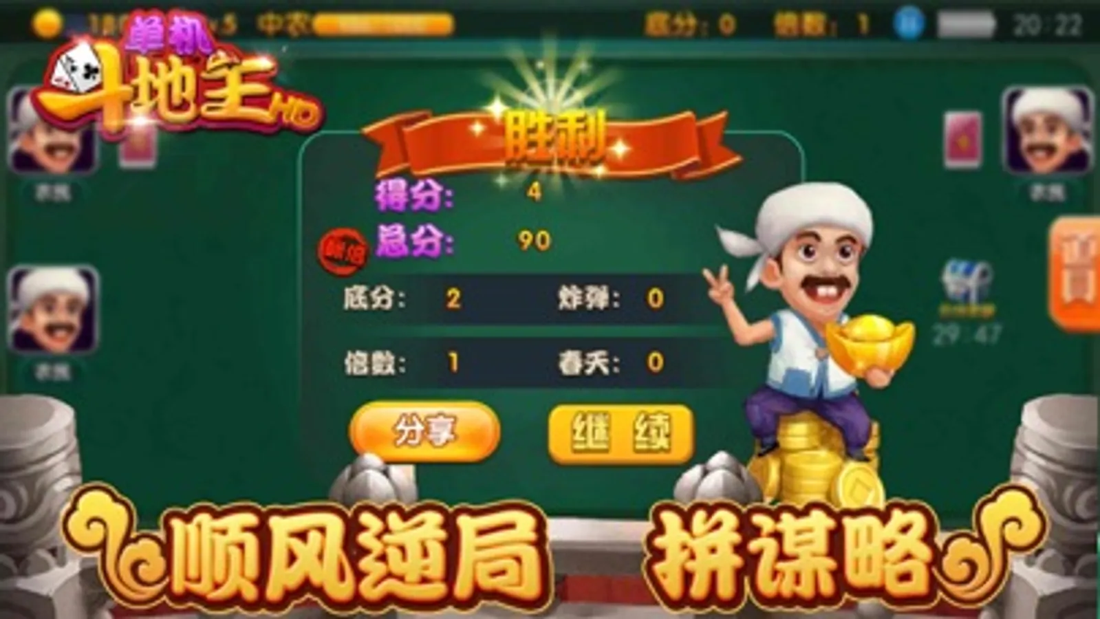 浓厚中国特色的扑克游戏“斗地主”,简单有趣, 上手快!单机挑战,奖励,公平,舒心最火的免费游戏,智能ai如同真实的坐在牌桌上和网友一起欢乐斗地主,真实场景化的游戏界面,让您感受家一般的温馨。打斗地主就这么简单