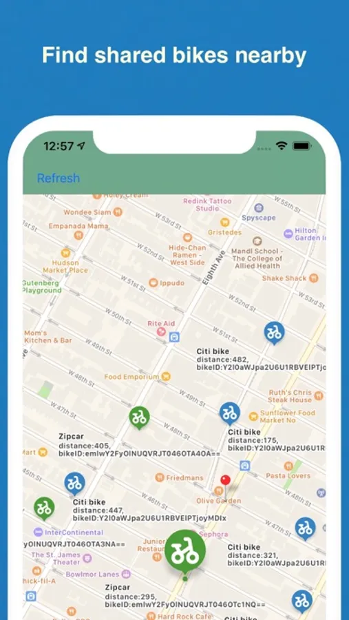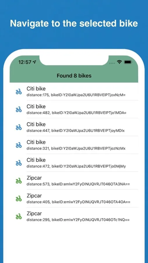 * Navigate to the location of the selected bike by build-in Apple map, Google map, Baidu map, or Autonav.
