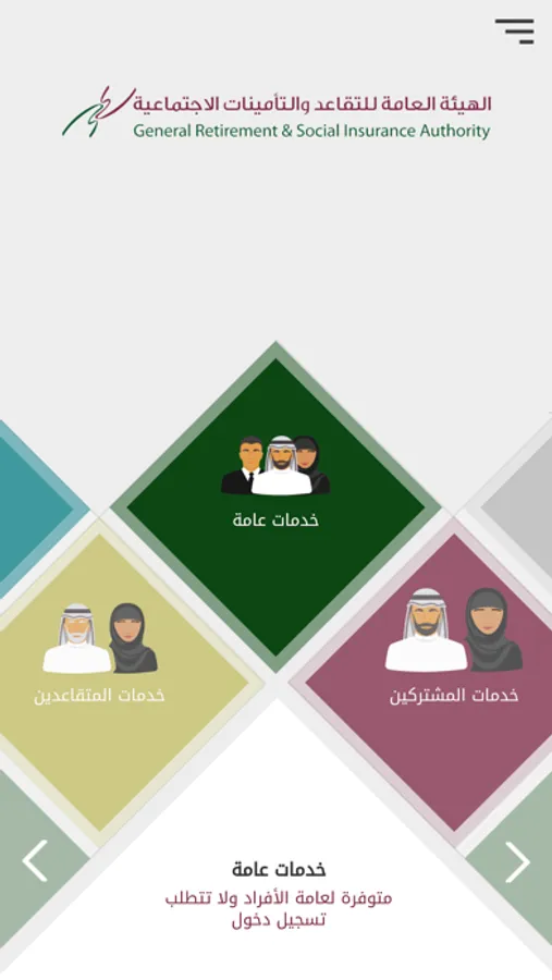 GRSIA mobile application includes list of services and features designed to support GRSIA customers (Contributor, Pensioner, Beneficiary, Agent and Publics) by allowing them to submit and follow-up their requests, query their own data, and answering their pension calculation(s) enquiries.