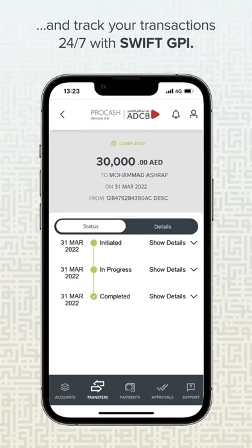 Manage your accounts seamlessly, approve your transactions in no time, pay salaries or transfer funds easily within the UAE and across the globe.