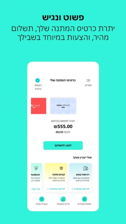 יש לכם כרטיס gift card של max בארנק? המירו אותו לדיגיטלי ונהלו את כל כרטיסי המתנה במקום אחד.