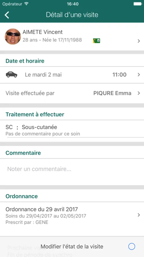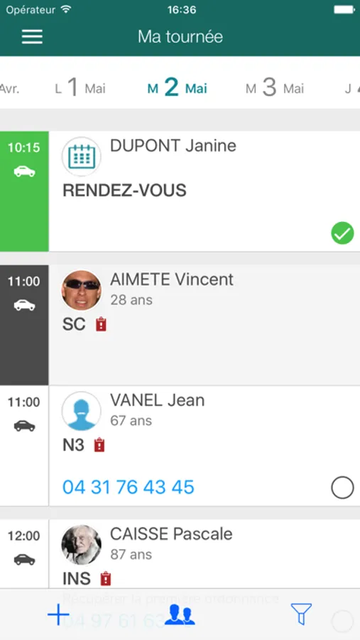 - vous pouvez facilement modifier le praticien intervenant ou l'horaire de passage ;