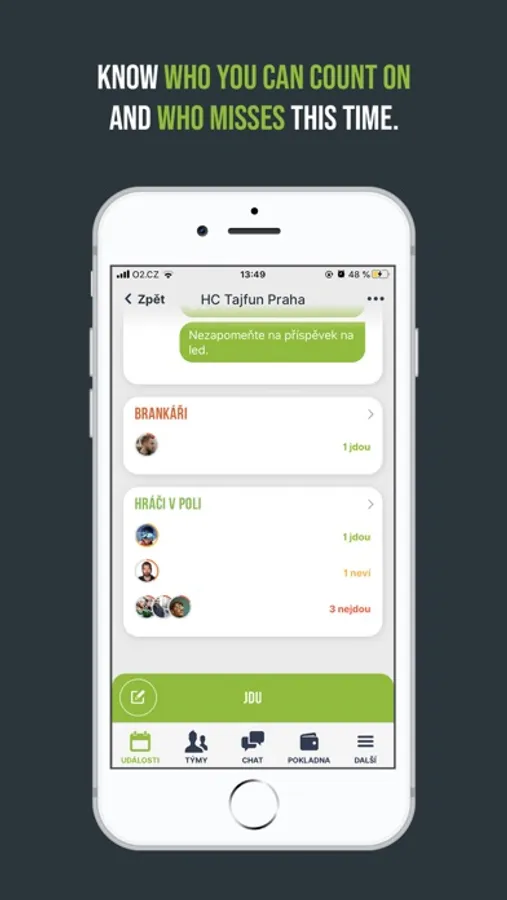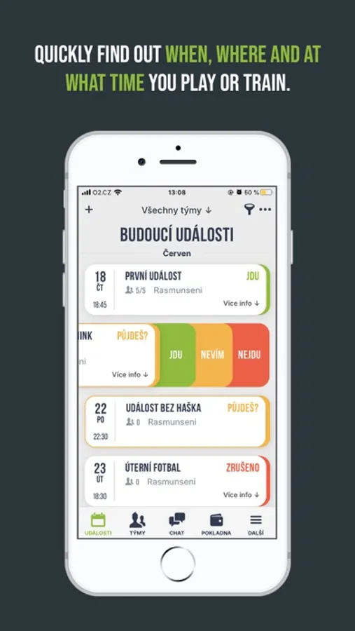 The notification system speeds up the response to new events in the team. The invitation to the event, created by the captain, will come to everyone on time. Everyone will also learn about the change or cancellation of the event immediately. No one can make excuses for not knowing about something. Choose for yourself whether you want to receive notifications directly to your mobile phone or by e-mail.