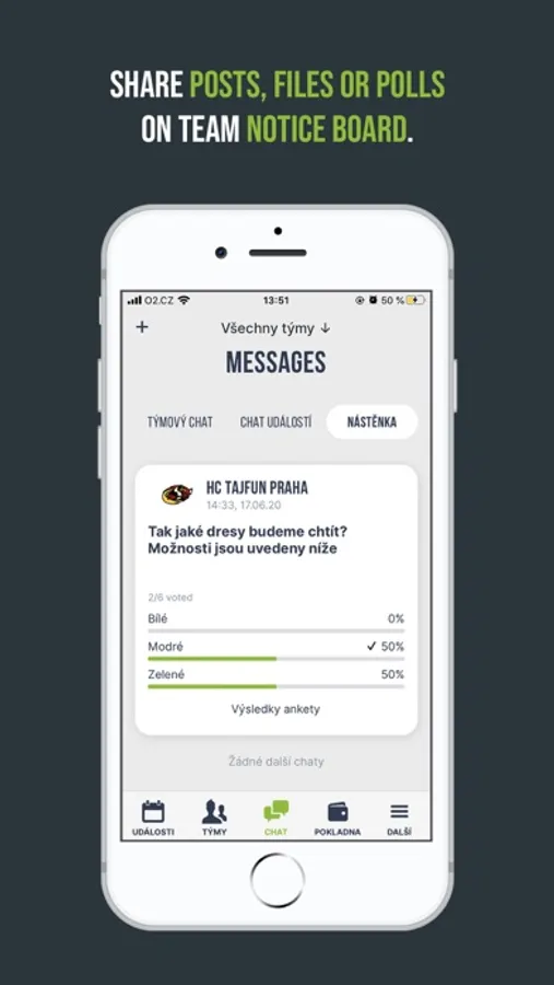 Write and share important articles, information or instructions for the team. Add files or create a quick poll, so you know what new colour of jerseys the team prefers.