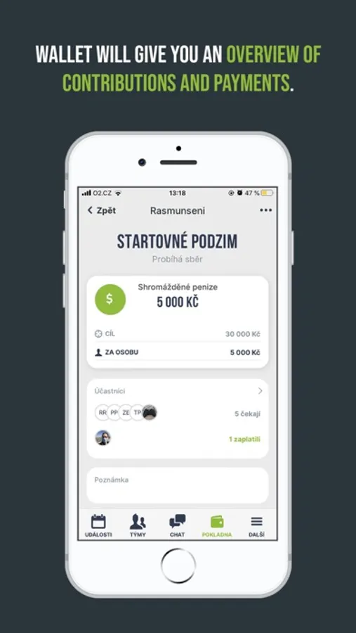 In the wallet module, you can easily create payment requests for membership fees or for the gym. You will have a clear record of payments and you will see who owes or how much is left in the team wallet.