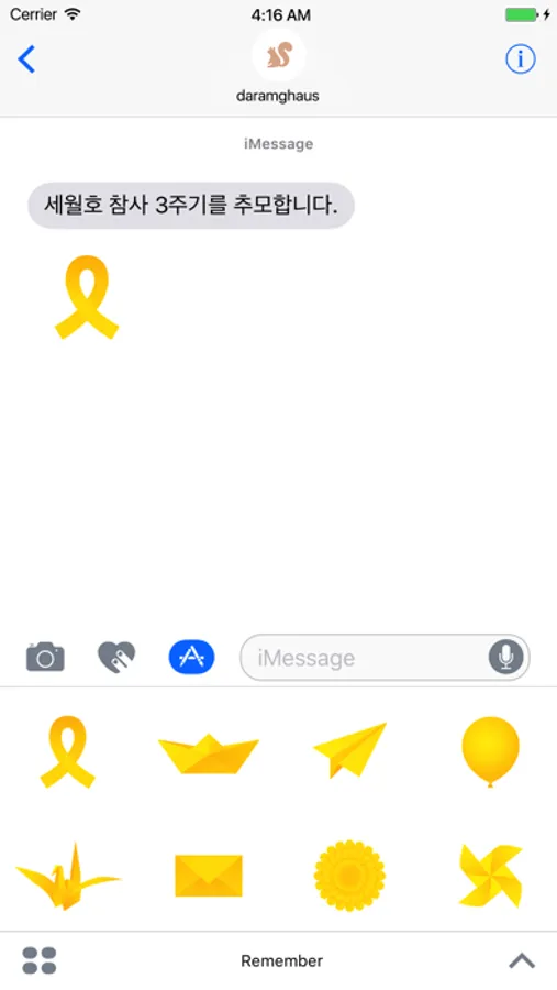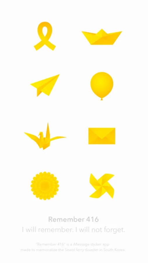 "Remember 416" is a iMessage sticker app made to memorialize the Sewol ferry disaster in South Korea.