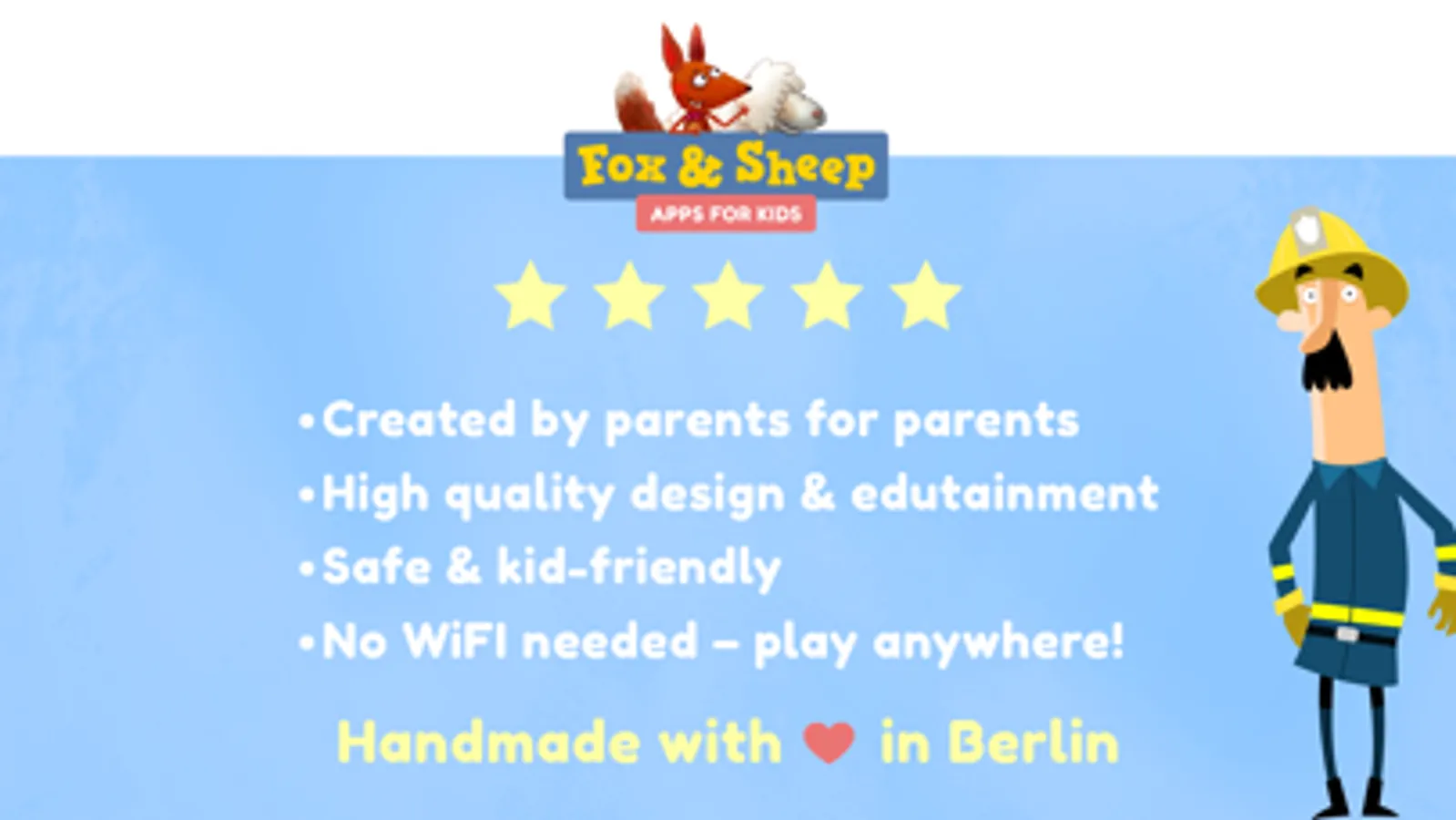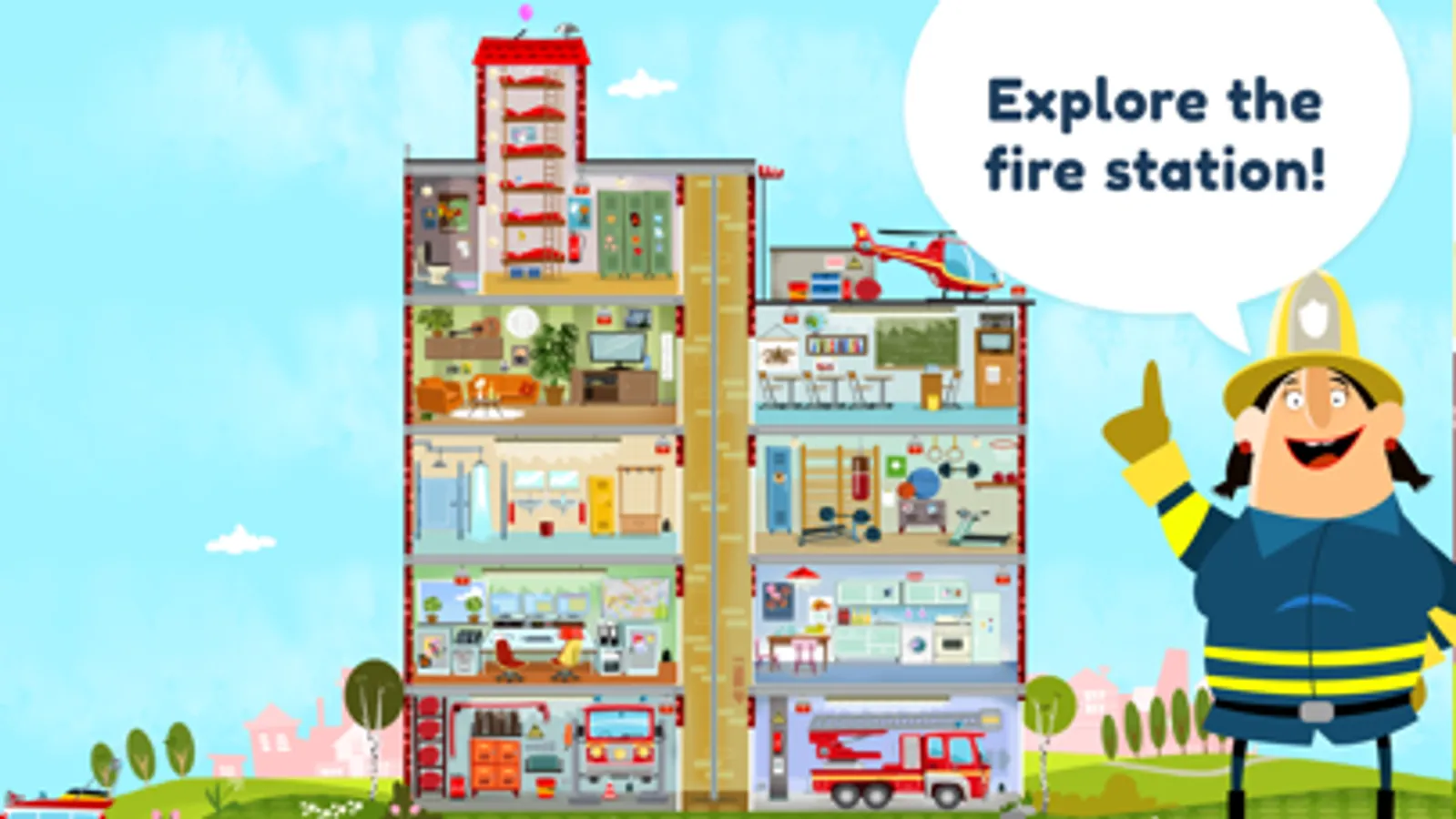 Help the little fire fighters to go on missions to extinguish a fire, save an animal or to experience many other adventures! But it's not only about the missions - enjoy the daily routine of our little fire fighters: Explore the fire station and interact with the objects, animals and firefighters in each room.