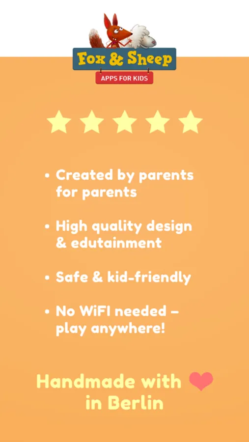 We are a Studio in Berlin and develop high quality apps for kids at the age of 2-8 years. We are parents ourselves and work passionately and with a lot of commitment on our products. We work with the best illustrators and animators around the world to create and present the best apps possible – to enrich the lives of our and your kids.