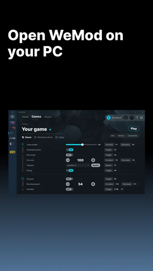 Connect WeMod Remote to your WeMod desktop app to get started today!