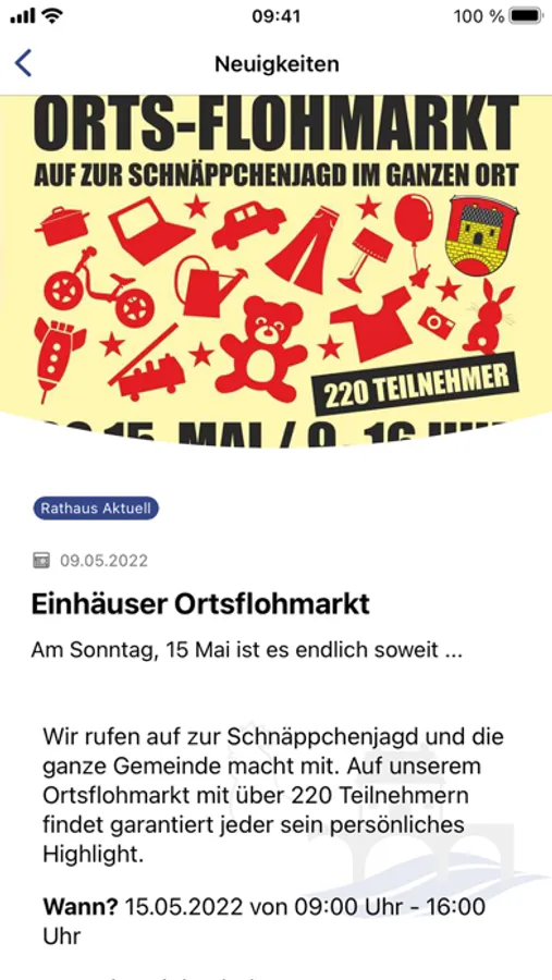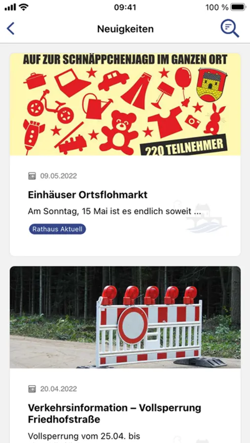 Mit dieser App erhalten Sie einen schnellen und einfachen Zugriff auf aktuelle Meldungen der Gemeinde Einhausen. Darüber hinaus können Sie sich über Veranstaltungen und andere Termine informieren und diese direkt in Ihren eigenen Kalender übernehmen. Informationen aus dem Rathaus erhalten Sie mittels Push-Nachrichten, deren Empfang Sie über die Auswahl einzelner Kategorien selbst steuern können. Bleiben Sie stets up to date – mit Ihrer Einhausen-App.