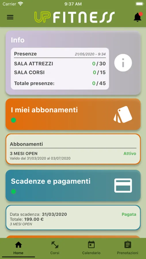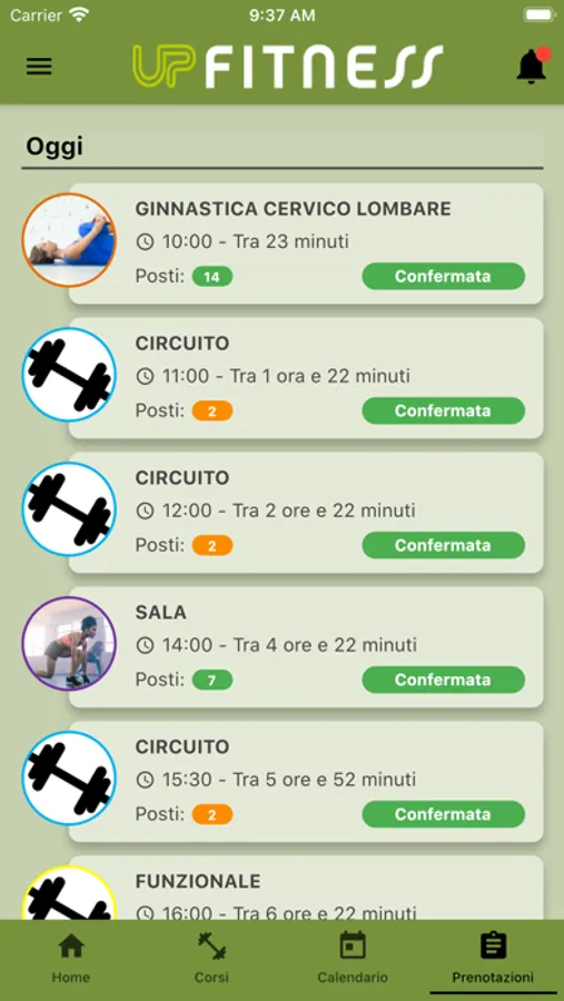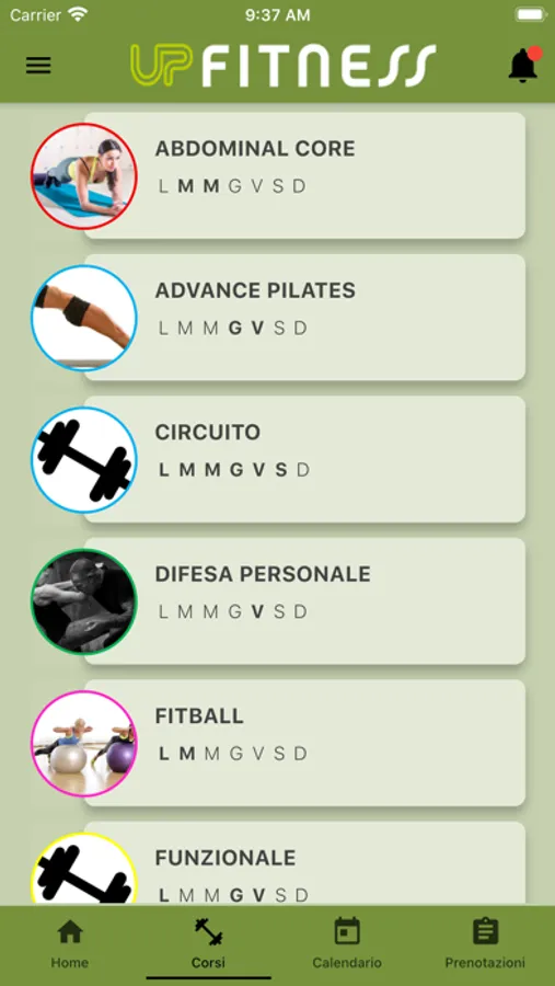 Mobile App per il sistema di gestione di centri sportivi UP Fitness. Consente la visualizzazione della programmazione di attività e corsi e la possibilità di iscrizione ad essi.