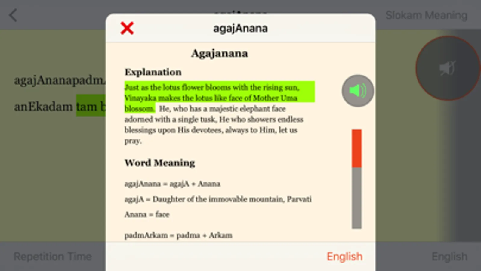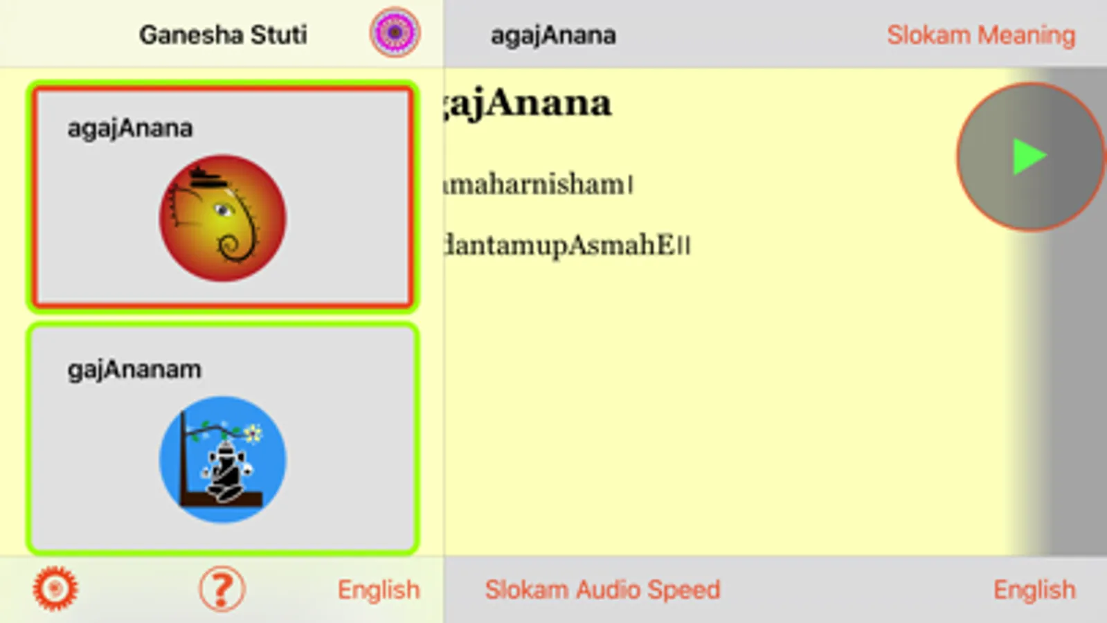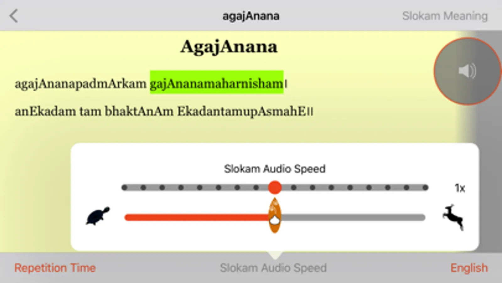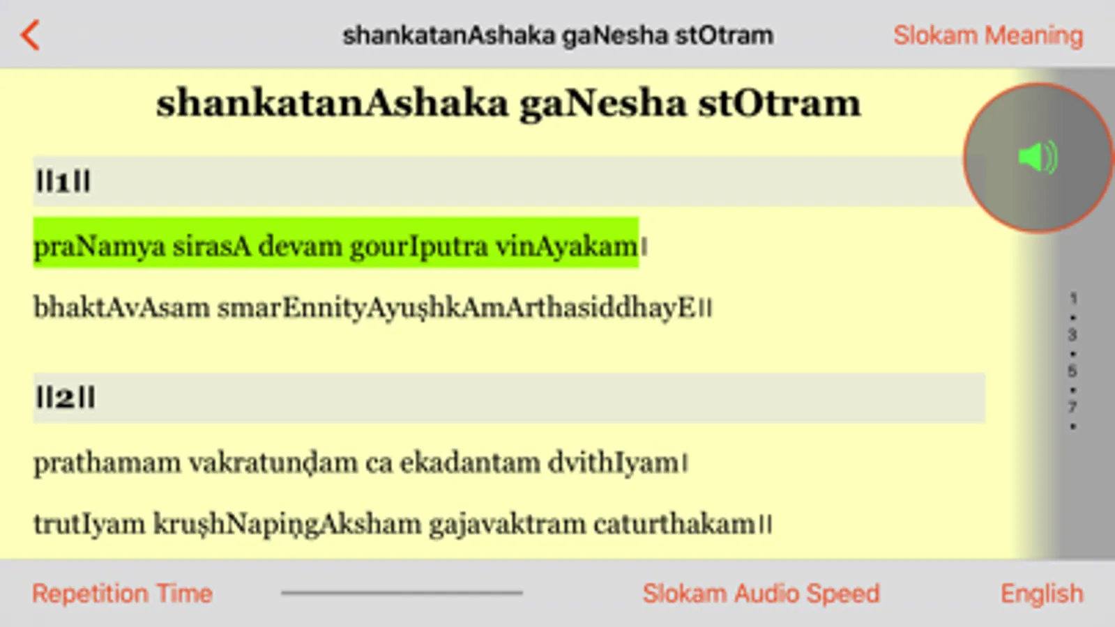 Our sloka audio is designed to help the User in correct diction and pronunciation. The tune, with no instruments, makes the sloka recitation easier.