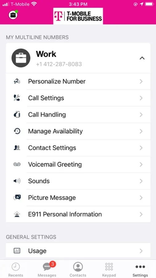 T-Mobile MultiLine makes is easy to add a second company managed number to a personal BYOD mobile phone. Employees can now carry one phone while keeping their work and personal number completely separate. The solution gives employees a distinct phone number for their work voice calls, text messaging and voicemail while maintaining their personal phone number. The T-Mobile MultiLine app is simple to use and works over any domestic carrier network. T-Mobile MultiLine also provides granular insights and analytics into work related productivity. Activation of the T-Mobile MultiLine service is required.
