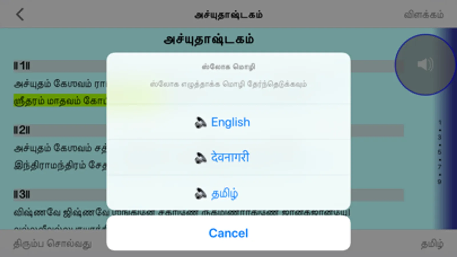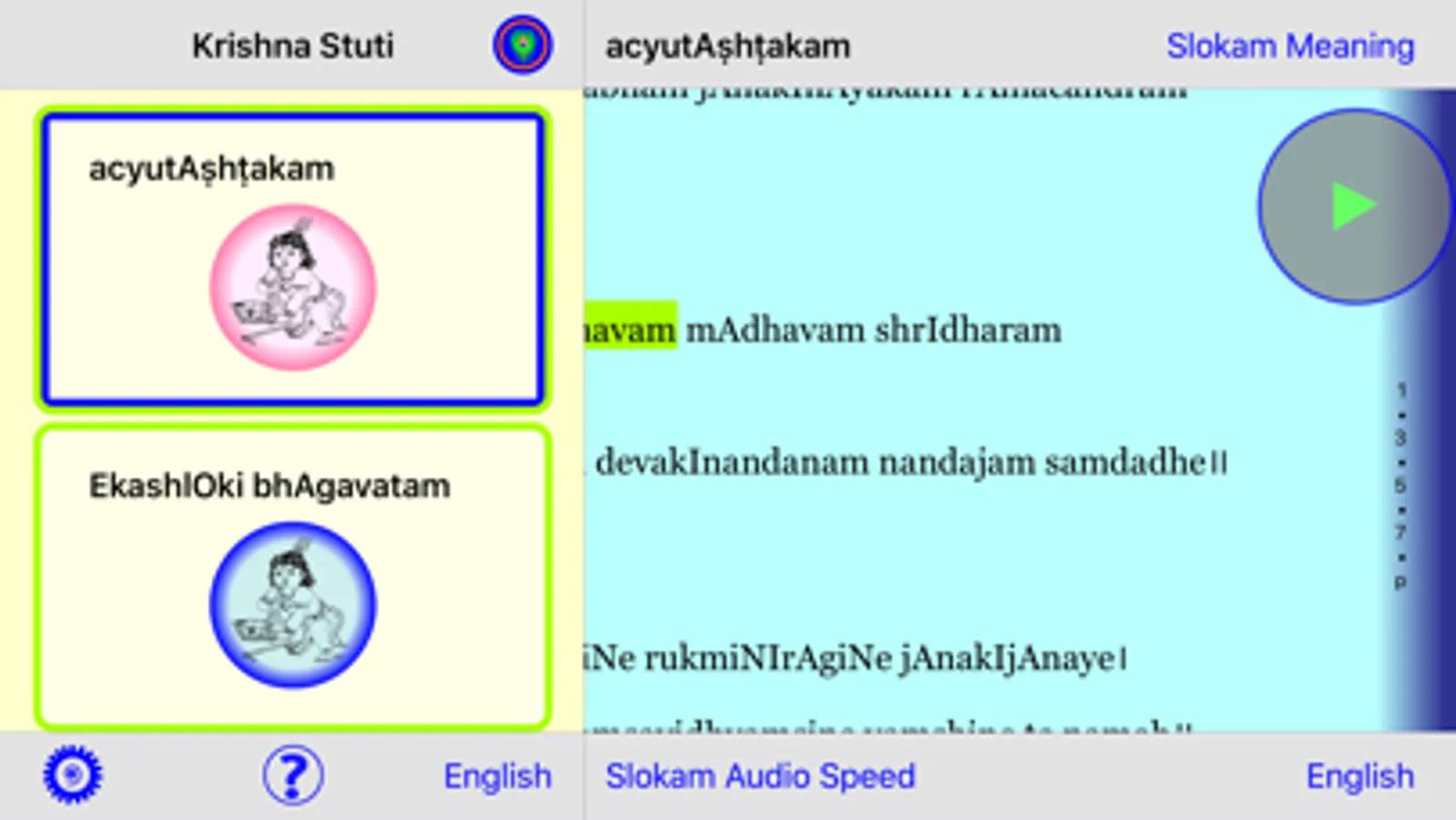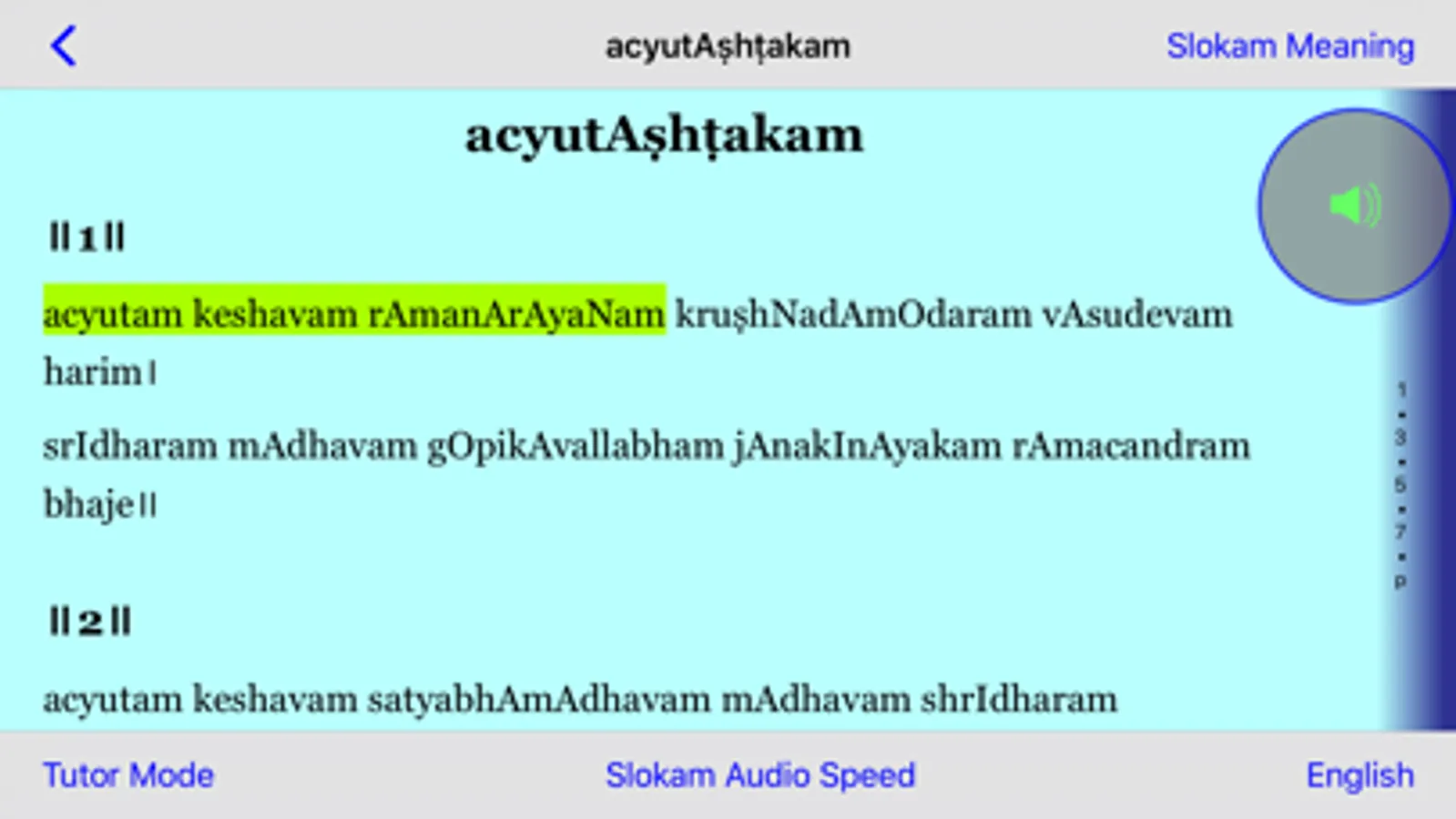 * Speed of the sloka audio can be adjusted by the User.