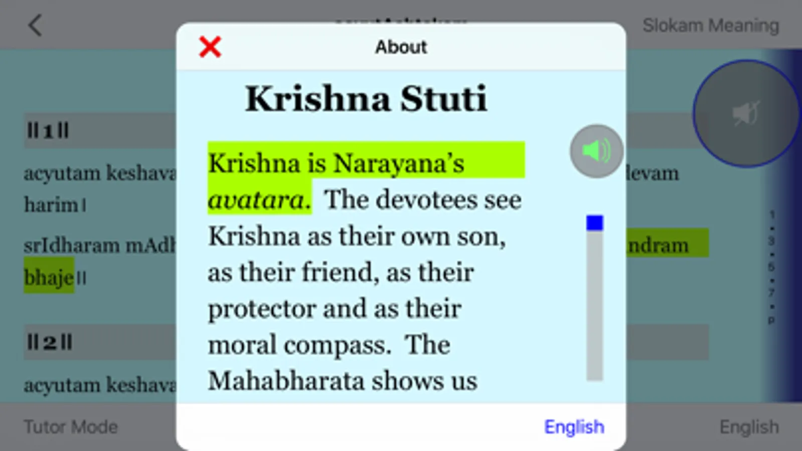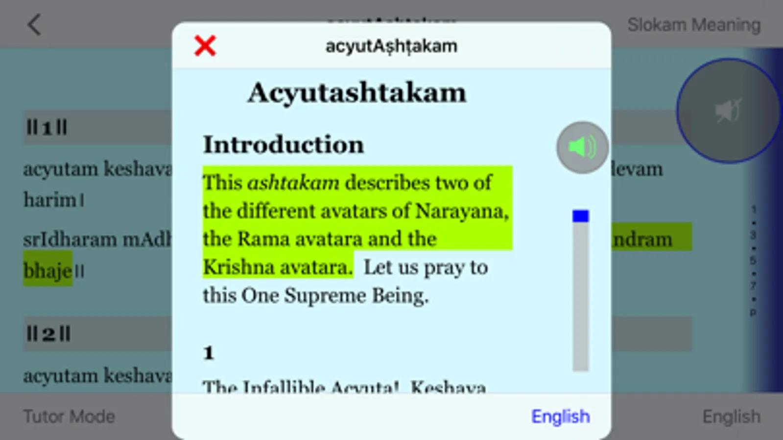 - Sloka Meaning text with synced-audio in