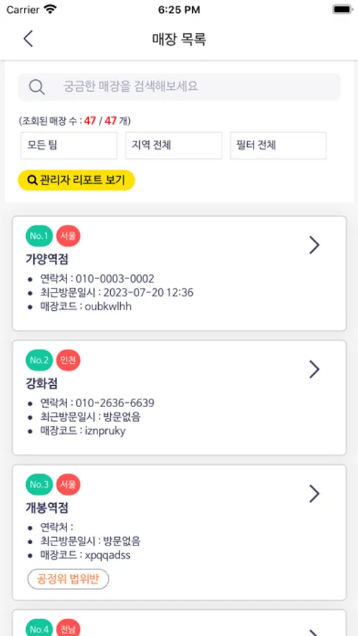 - 가맹점 관리 과정을 서버에 저장 및 데이터 관리 가능