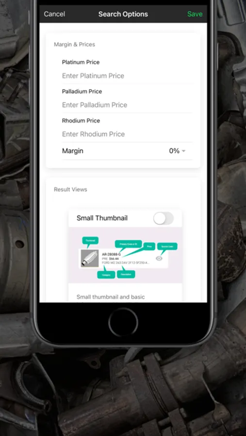 Entering the part number will produce current values of Catalytic converters using live market quotes. Results will train you to identify the primary codes and dismiss others. Search results will also yield buying categories to create a faster method of grading. Create pricing tiers for your clients or employees to follow.