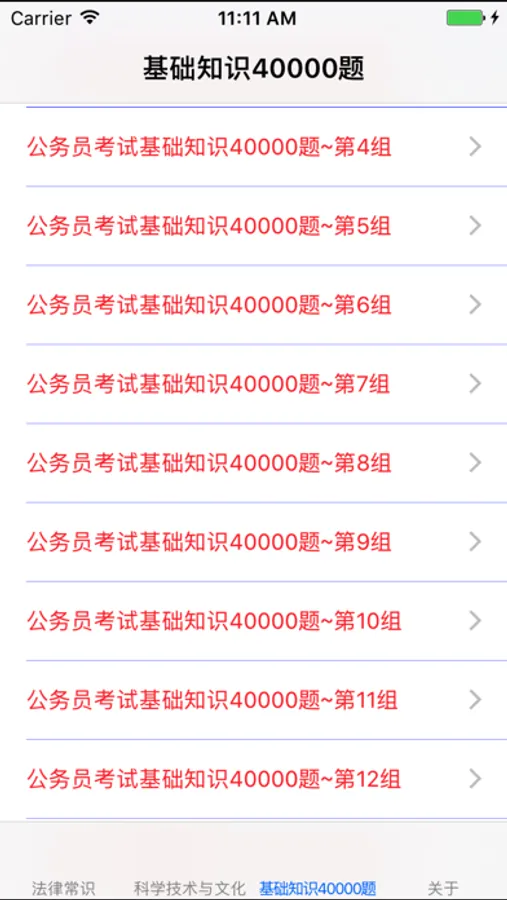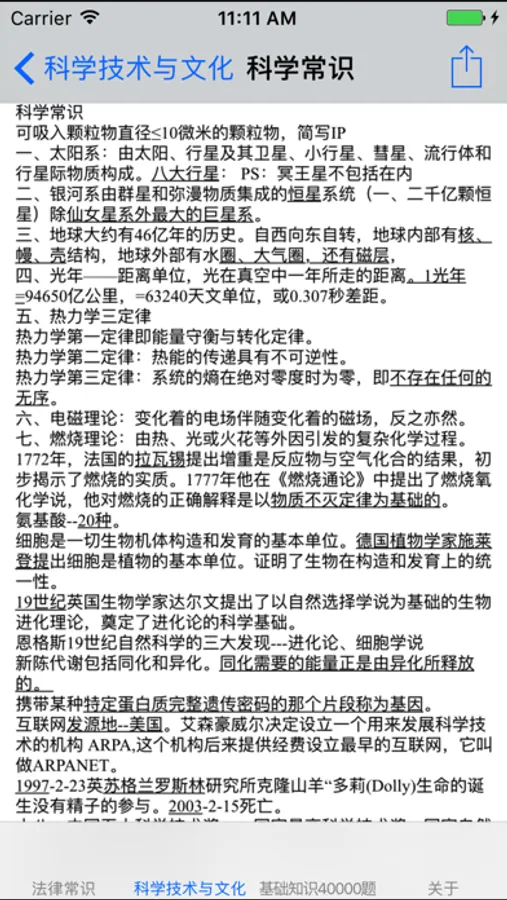 -----分类总结:法律常识、科学技术、文学常识、历史知识、公务员常识40000题;
