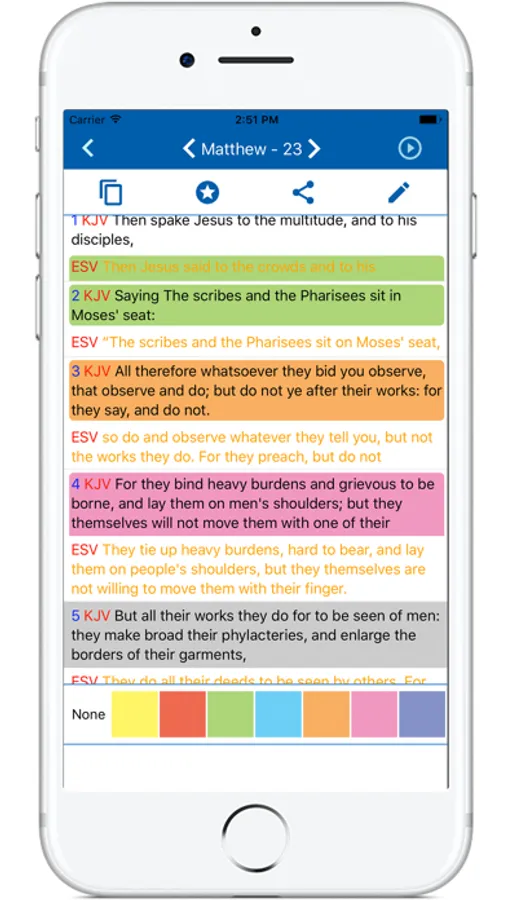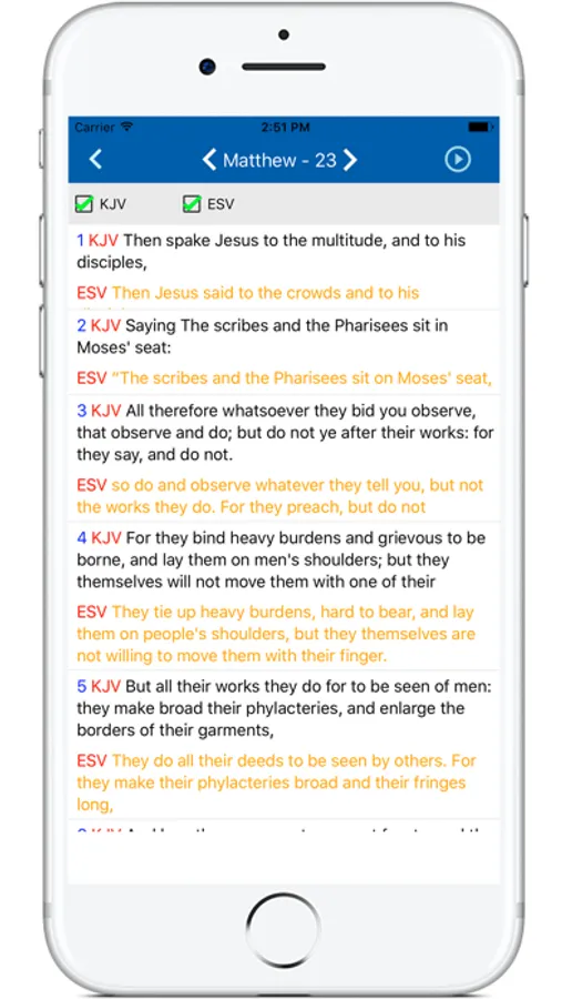Holy Bible (Multi Version) is a powerful Bible Reader which has possibility to download different versions of Bible to your device. This offline Bible App combined couple versions parallel (verse by verse). After download version(s), you can select any version(s) during your reading to compare.