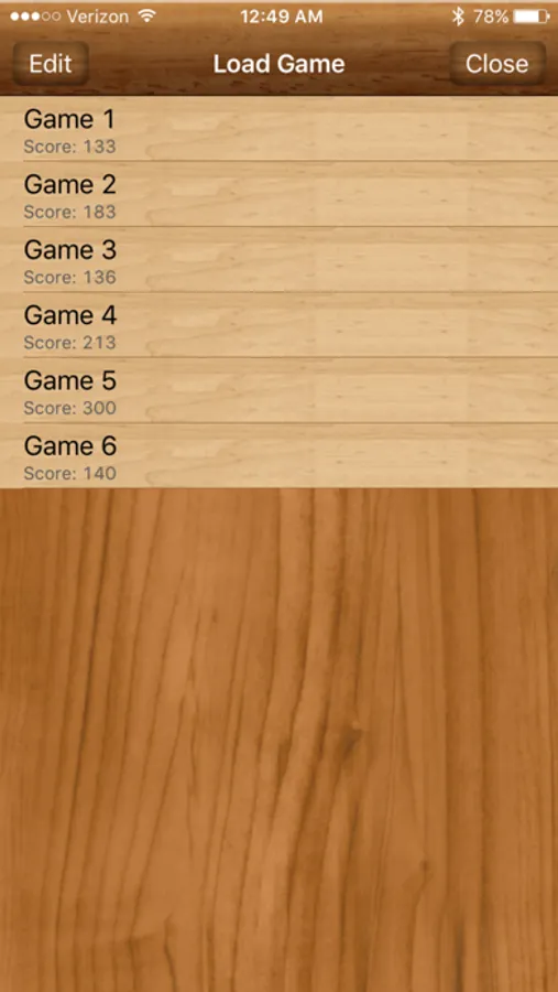 The app also has support for saving games. For each game you wish to save, simply tap the "Save" button at the bottom of the screen, and enter a desired name. Saved games can be re-loaded at any time by tapping the "Load" button.