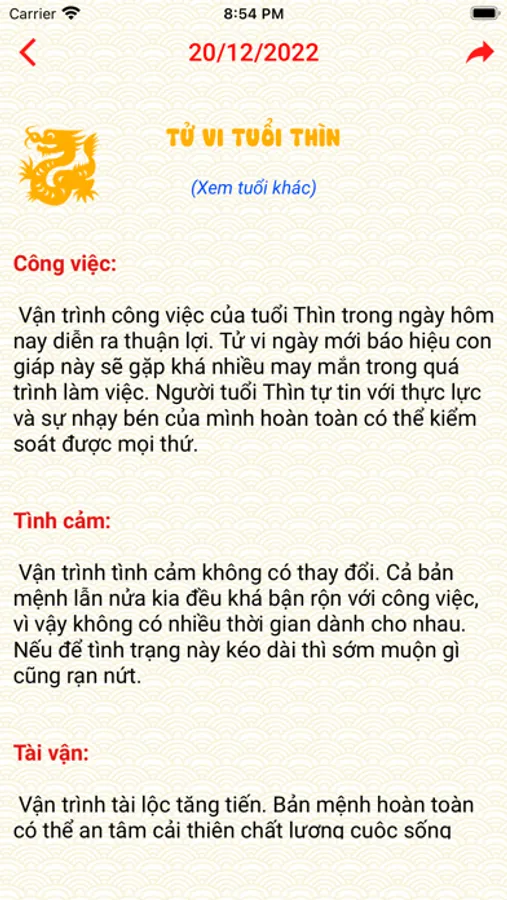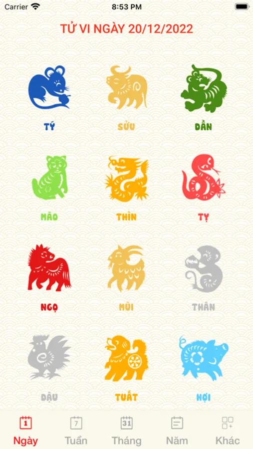 Ứng dụng xem tử vi hàng ngày, tuần, tháng, năm cho mỗi tuổi.