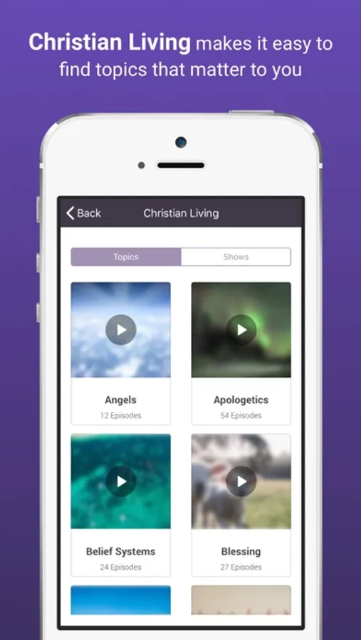 -Topic based content called “Christian Living” gives you quick access to curated playlists. Topics include mental health, angels, relationships, belief systems and many more, taught by world-renowned pastors and teachers.