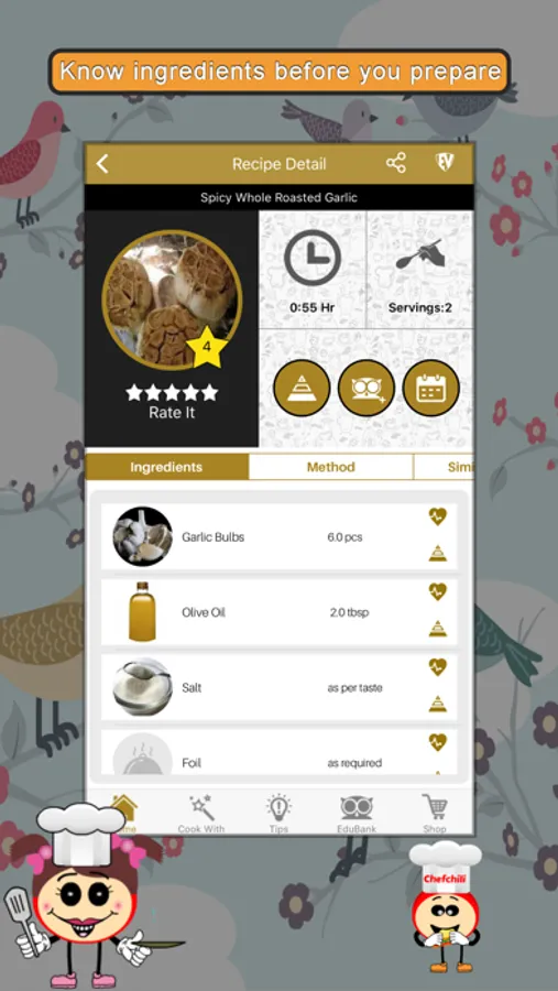 The app provides you a quick user friendly access to the major categories like Vegan, Vegetarian, Non-vegetarian, Snacks, Appetizers, Entree, Accompaniments, Condiments, Sauces, Confectionery items, Desserts and more. All recipes have been organized and cataloged, so that you can easily find any recipes by Courses, Taste Buds, Cuisines and Ingredients. Choose your Dietary needs for Vegetables, Fruits, Seafood, Poultry, Dairy, Pulses, Grains and more.