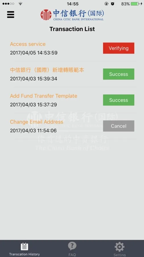 Once enabled, you can use CNCBI Token as two-factor authentication to complete the following transactions: